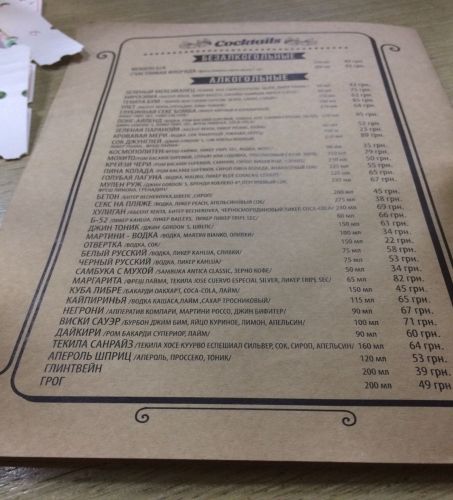 E, aspettando che la pioggia lasci il posto ad un po' di sole, ci rifugiamo in un bar. Ordiniamo uno Spritz... lo vedete elencato in fondo al menù.