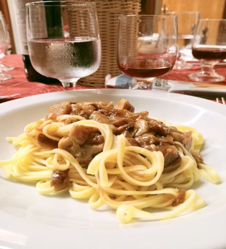 Iniziamo con un #albese ai funghi porcini, un #tortino di funghi, #tagliatelle ai funghi e #risotto ai funghi, #funghi fritti. Potremmo proseguire, dato che sono in menù secondi di carne coi funghi, ma per decenza e rispetto al nostro fegato, preferiamo fermarci, innaffiando il tutto con del Pelaverga del Saluzzese a km.0.