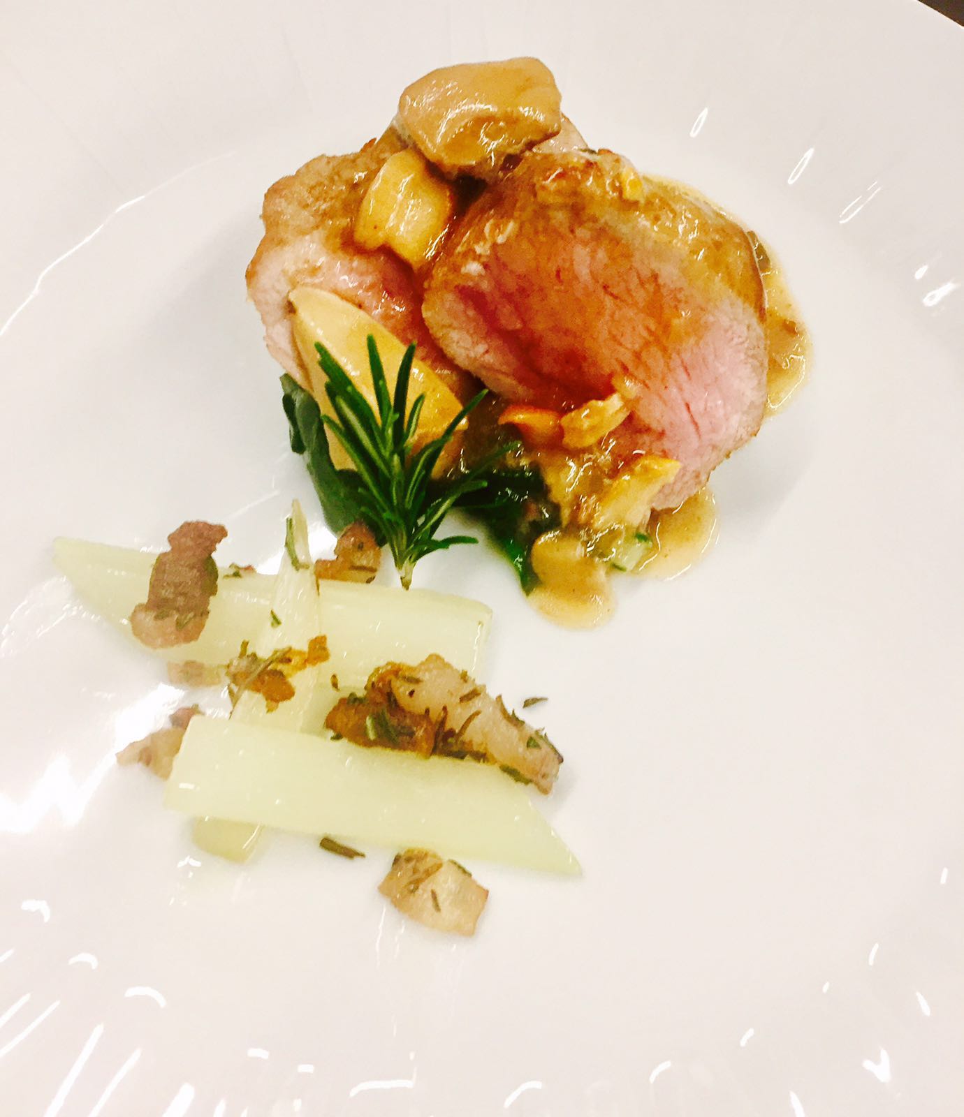Lombata di vitellone con funghi invernali e bietole col lardo Arnad