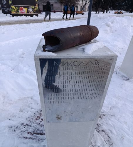 Lungo questo triste viale, oggi addolcito dal candore freddo della neve, sono stati raccolti resti e frammenti di armi, missili, droni, razzi e posizionati su 15 basamenti in cemento titolati a Sumy ed altre città, come #Kiev, #Mykolaiv #Odessa, #Vovchansk che hanno subito attacchi russi.